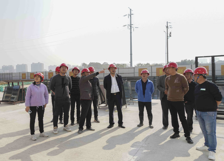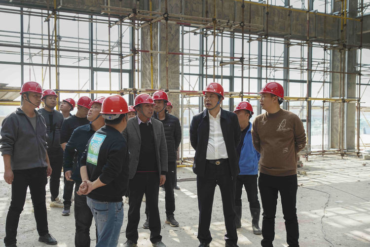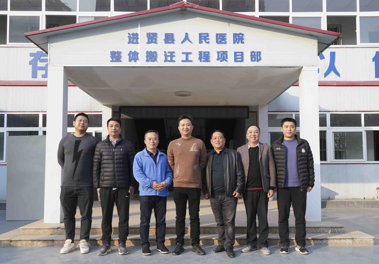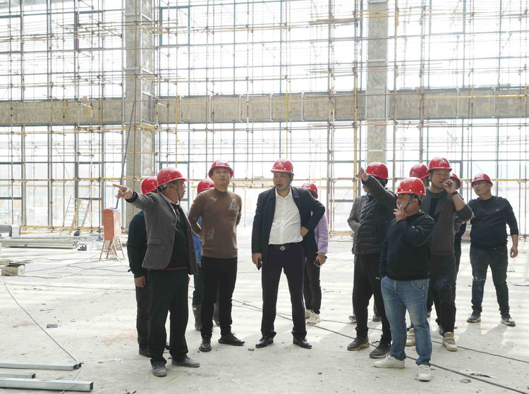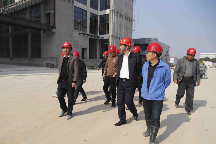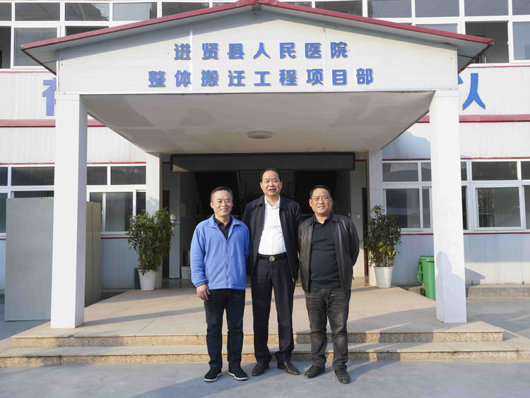 2021年12月11日樊总带队工程部在进贤人民医院搬迁工程项目部的陪同下,在工地现场指导工作。